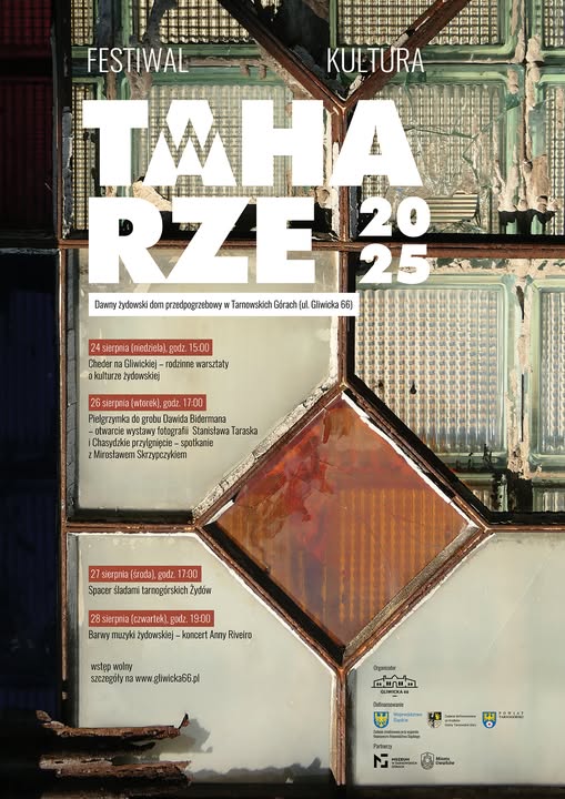 Stowarzyszenie „Gliwicka 66” zaprasza do dawnego żydowskiego domu przedpogrzebowego w Tarnowskich Górach, by wspólnie przypominać i lepiej poznawać wielokulturowe dziedzictwo naszego miasta. W tym roku, od 24 do 28 sierpnia, przygotowali cykl wydarzeń, w ramach którego odbędą się: warsztaty o kulturze żydowskiej, wystawa fotografii Stanisława Taraska, spotkanie z Mirosławem Skrzypczykiem, spacer śladami tarnogórskich Żydów oraz koncert Anny Riveiro. Wstęp jest wolny.