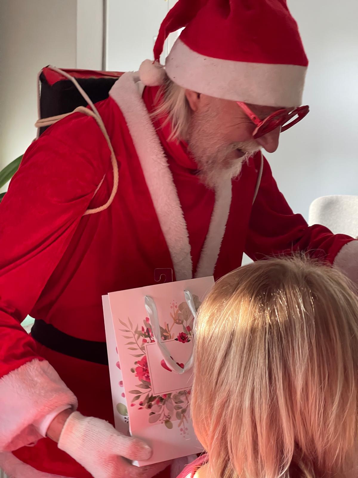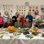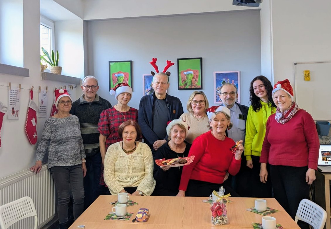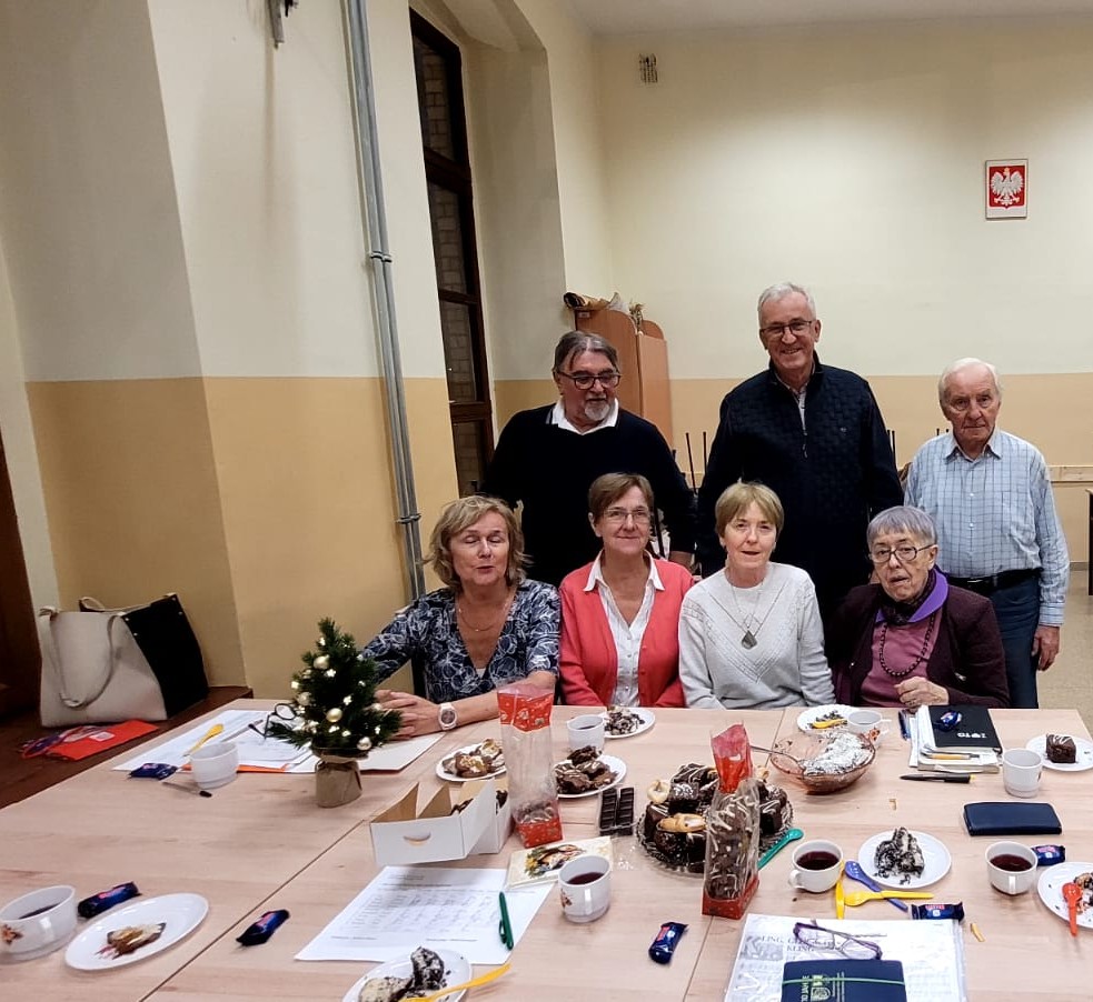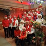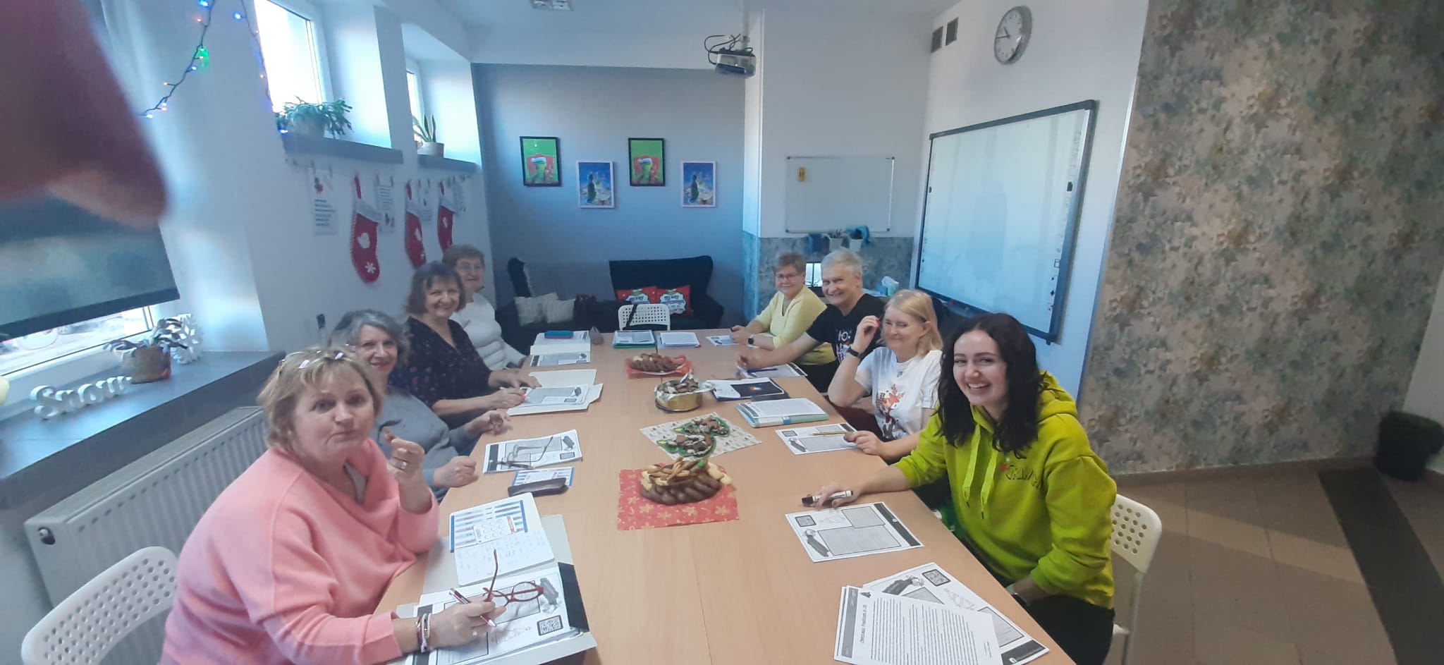 Przy skromnie, ale z sercem przygotowanych świątecznych stolikach gromadziliśmy się jak jedna, dobra rodzina. Był czas na rozmowę, uśmiech i życzenia płynące prosto z serca. To nie tylko stół jednoczył była też prawdziwa dawka MOCY i ENERGI wieńcząca odchodzący rok – uczestniczki gimnastyki rozciągającej, eleganckie , rodzinne zdjęcie zespołu „a-gie” , wizyta Mikołaja z prezentami u malarek, pozdrowienia od kucharek i grupy fitnessowej, łamanie się opłatkiem zespołu „Frajda”