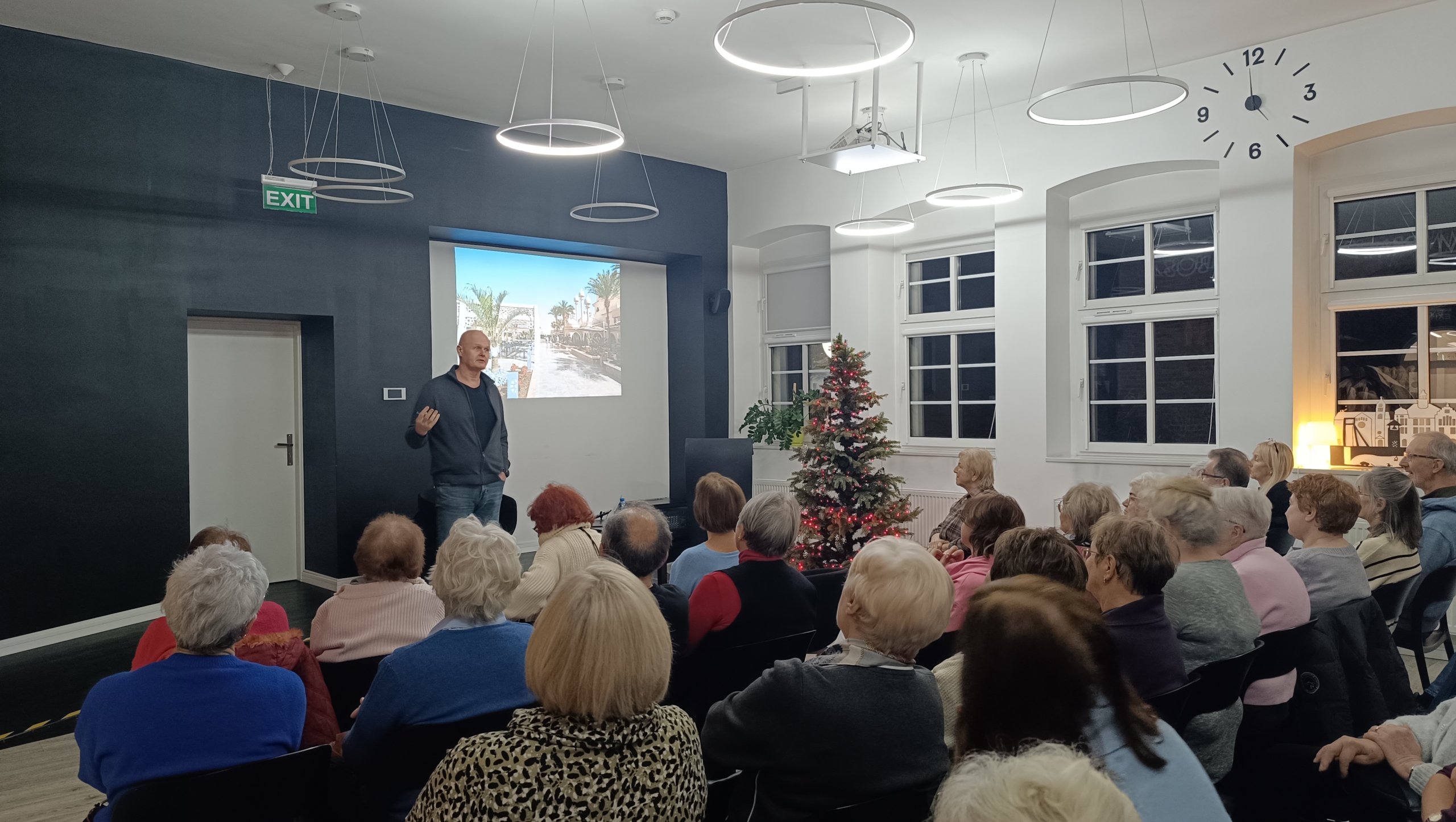 Dzięki bogatej dokumentacji fotograficznej odbyliśmy wirtualny spacer po Mieście Umarłych,Mieście Śmieciarzy, zatłoczonych bazarach oraz sklepach pełnych owoców i aromatycznych przypraw. Nie zabrakło także praktycznych wskazówek – dowiedzieliśmy się, jak bezpiecznie poruszać się po mieście oraz jakie środki warto zaopatrzyć w aptece, by uniknąć dolegliwości znanych turystom jako „Klątwa Faraona”. Ważnym elementem spotkania były również opowieści o piramidach i innych miejscach o wyjątkowym znaczeniu historycznym.