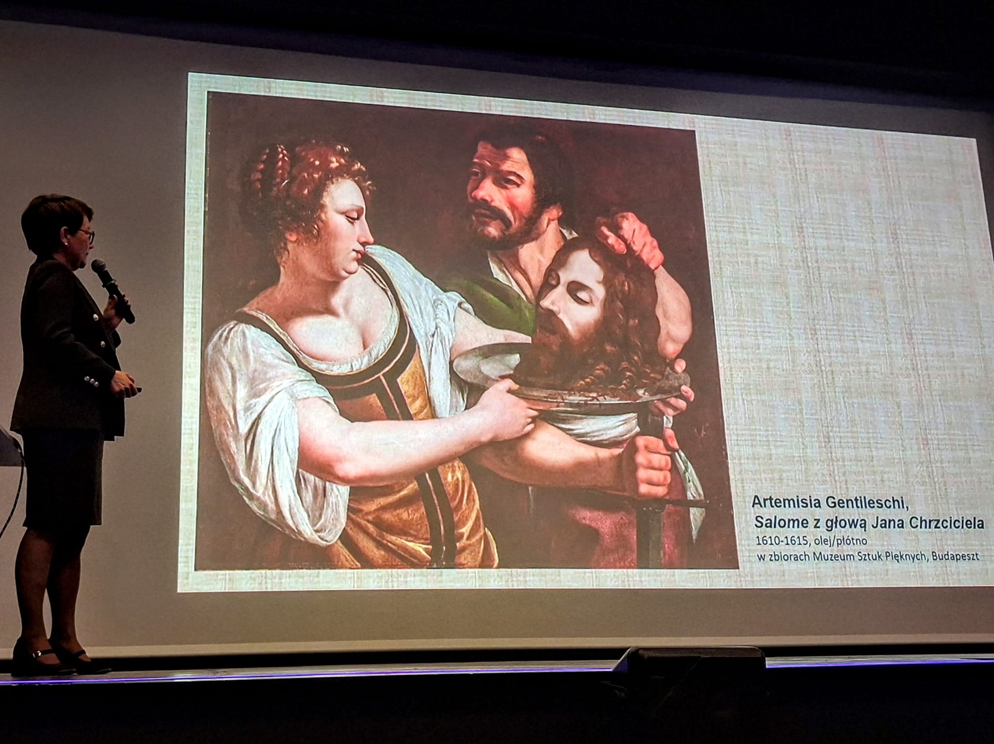 Było to spotkanie niezwykle inspirujące – zarówno ze względu na postać samej malarki, jak i sposób, w jaki została ona przedstawiona. W epoce, gdy kobiety-artystki należały do rzadkości, Artemisia jawi się jako postać wyjątkowa, a jej twórczość – jako świadectwo siły ducha i artystycznej odwagi. Mimo trudności osiągnęła sukces w swojej epoce i podziwiana jest po dzień dzisiejszy. Wykład pani Beaty Kiszel pozwolił nam spojrzeć na barokową artystkę nie tylko jak na malarkę, ale także jak na kobietę, której historia wciąż porusza i skłania do refleksji, tak jak jej wybitne obrazy, np. „Judyta zabijająca Holofernesa”, „Zuzanna i starcy”, „Salome z głową Jana Chrzciciela”. Nasza prelegentka okazała się niezwykłą narratorką, gdyż poprowadziła wykład z wielkim wyczuciem, łącząc wysoki poziom merytoryczny z ujmującym sposobem opowiadania oraz pasją przekazu.