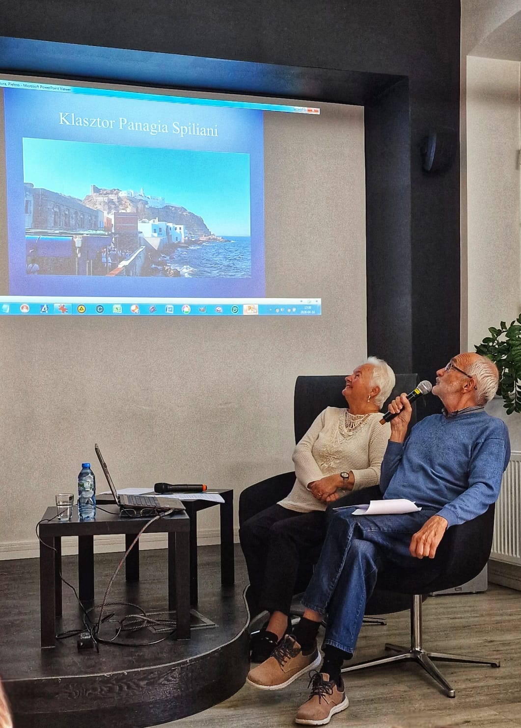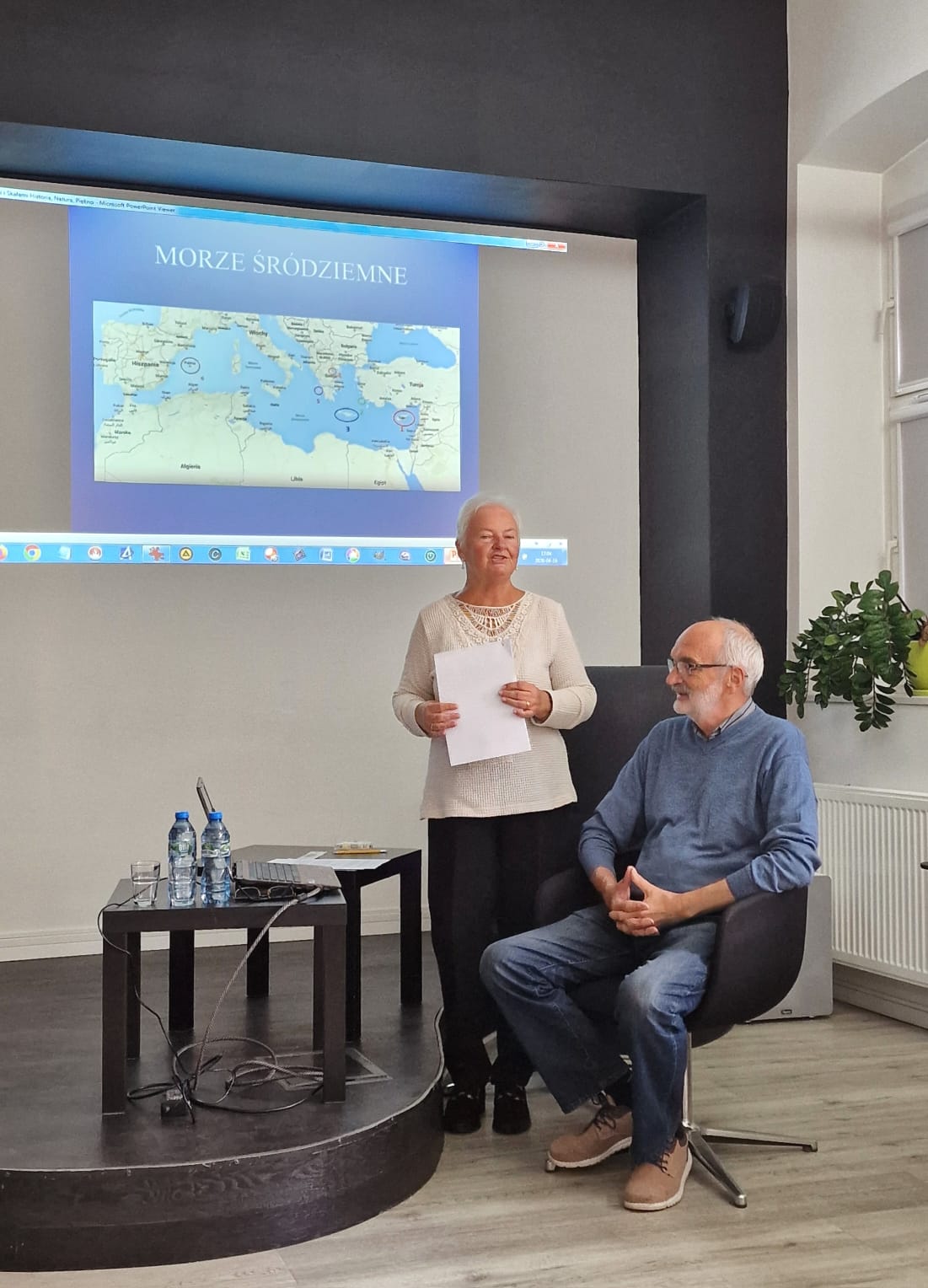 Spotkanie podróżnicze z Teresą i Krzysztofem Nikielami było niezwykle inspirującą opowieścią o pasji odkrywania świata, zwłaszcza tych miejsc, gdzie słońce, ciepło i bogata historia tworzą niepowtarzalny klimat. Prelegenci zabrali słuchaczy w podróż po wyspach Morza Śródziemnego, m.in Cypr, Kos, Kreta, Majorka.