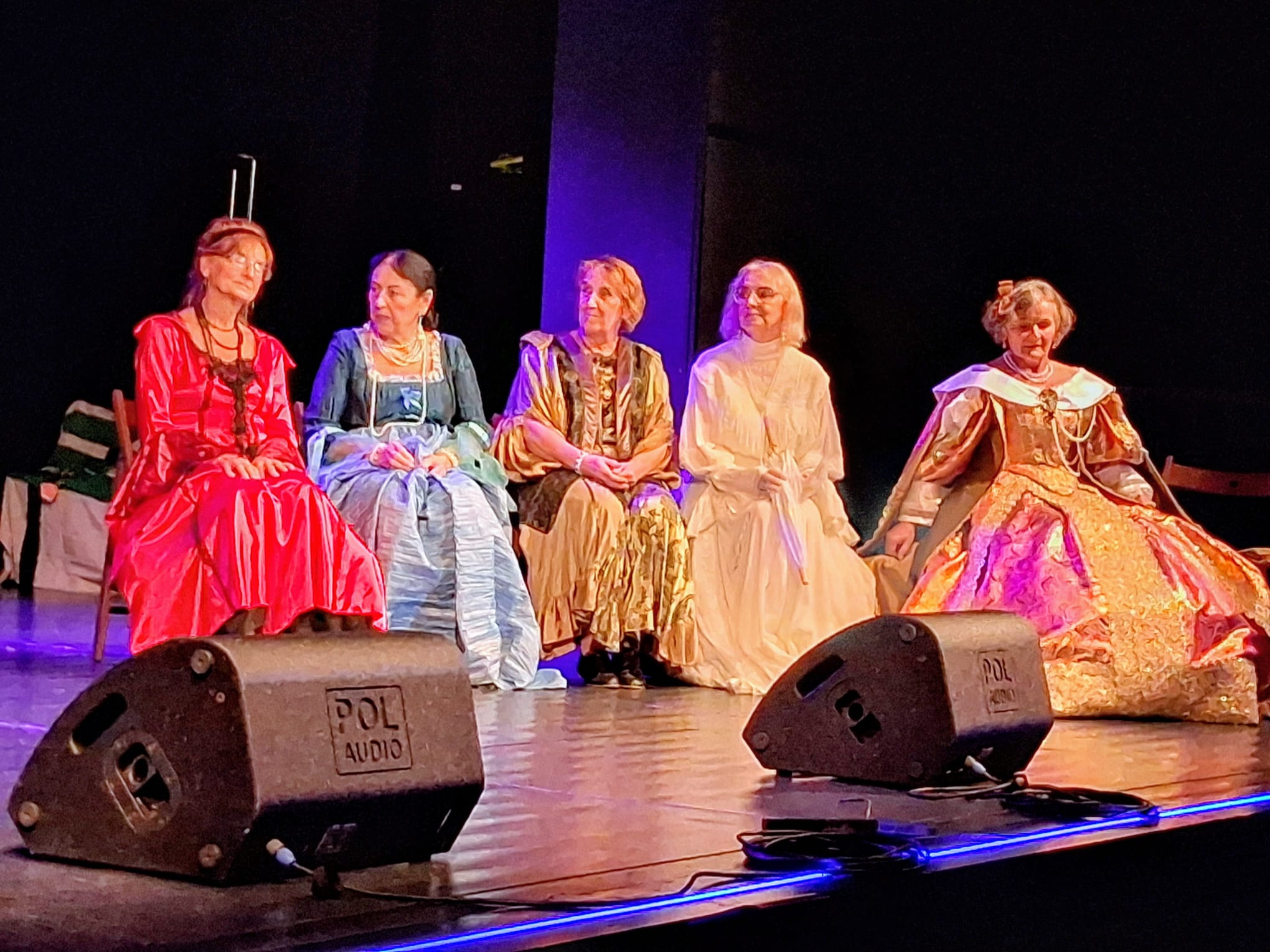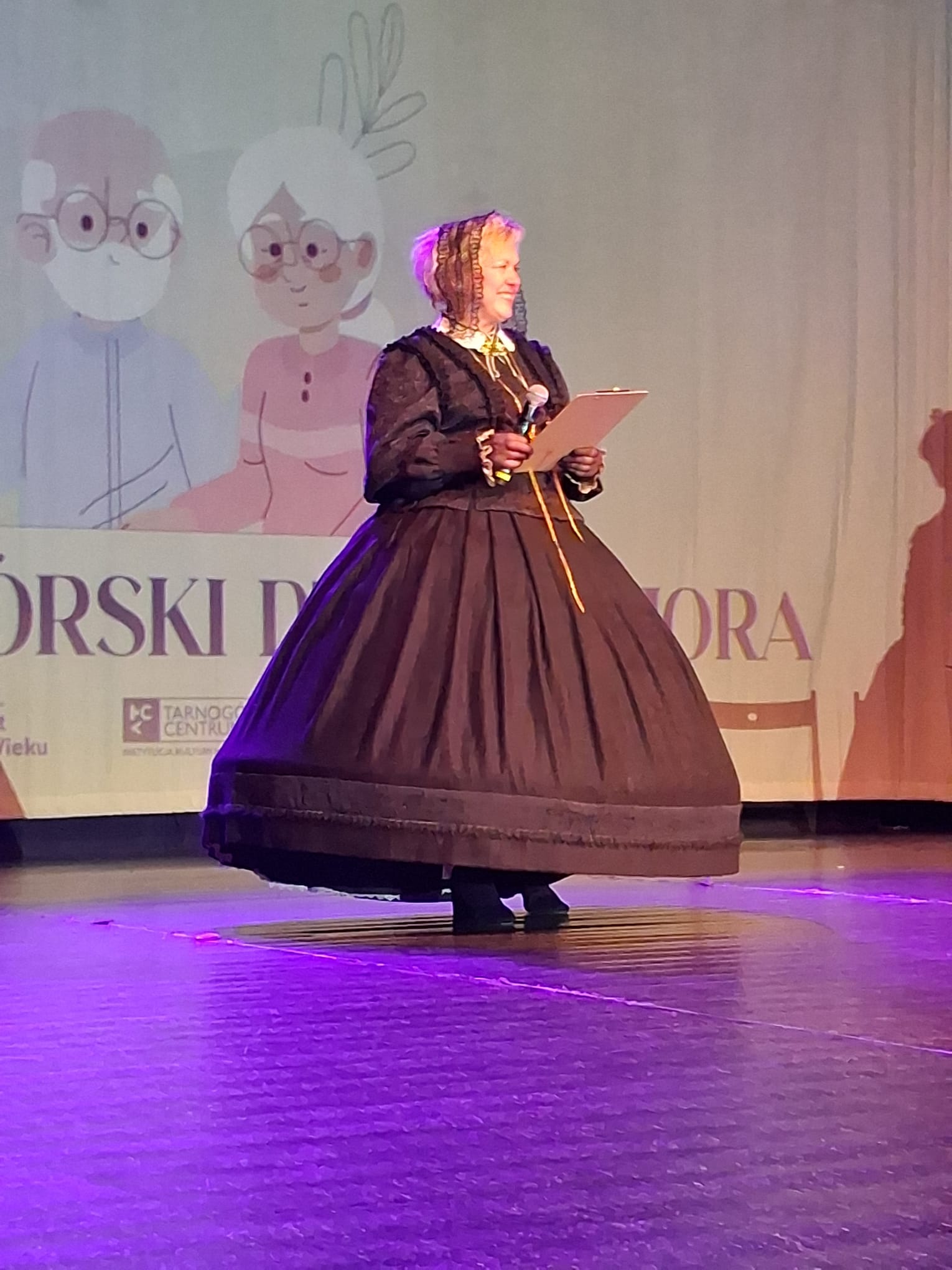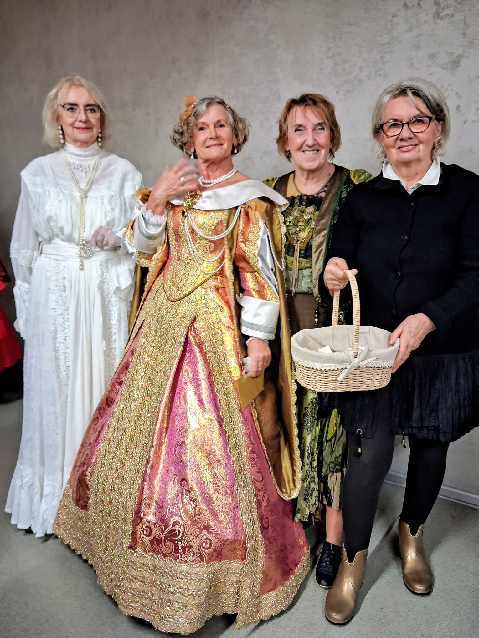 W trakcie wykładu zastosowano niezwykle efektowny zabieg – wykorzystanie żywych modeli. Pięć studentek Uniwersytetu Trzeciego Wieku, ubranych w przepiękne stroje historyczne o zróżnicowanej kolorystyce, prezentowało kolejne przykłady dawnej mody. Ich obecność nie tylko ożywiła opowieść, ale też pozwoliła uczestnikom z bliska zobaczyć detale, fasony i charakter epoki. Publiczność była pełna podziwu, a modele zebrały zasłużone, gorące brawa.